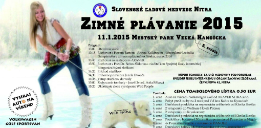 5. ročník Celoslovenského zrazu ľadových medveďov spod Zobora sa uskutoční už túto nedeľu 11.1.2015 v mestskom parku na Sihoti - Veľká Hangócka so začiatkom o 13:00 hod. Podujatím vás budú sprevádzať hudobný hosť Wild people. Počas akcie bude tombola s výhrou Auta (pozri program) a výťažok bude poskytnutý Spojenej škole internátnej s organizačnými zložkami, Červeňova 42, Nitra. VSTUP na podujatie je VOĽNÝ.