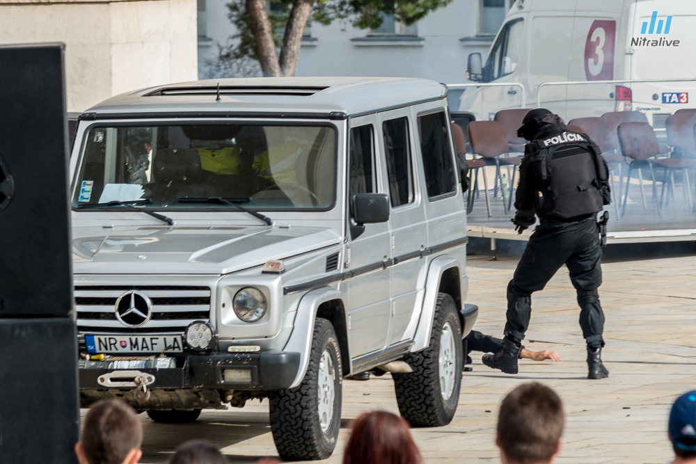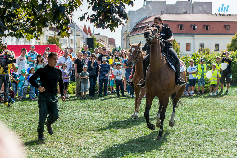 Deň polície, ktorý sa dnes konal v Nitre na Svätoplukovom námestí, prilákal stovky návštevníkov. Program začal vystúpením mažoretiek, privítaním hostí a následným preletom stíhačiek ponad námestie. Celý deň bol nabitý zaujímavými ukážkami pre deti aj dospelých. Či už išlo o sebaobranu, zásah poriadkových jednotiek, kynológov, pyrotechnika a ďalších. Vrcholom programu bola "rukojemnícka dráma" v Divadle Andreja Bagara počas ktorej zajali bankoví lupiči na čele s Alinkom Krasňanským (známym z televízneho seriálu) riaditeľa divadla. Celú drámu nakoniec ukončil zásah špeciálnych policajných jednotiek pod velením partie hercov z Profesionálov. Okrem policajtov sa dnes v Nitre predstavili aj záchranári z Gabčíkova, hasičský zbor, červený kríž, mestská polícia.