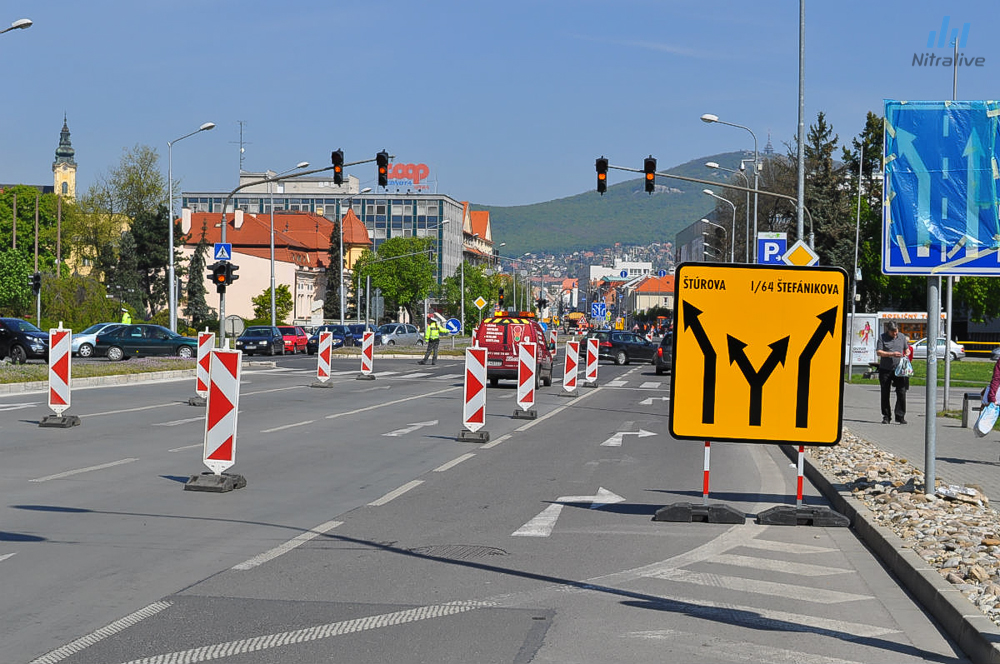 Dopravu v centre Nitry dnes komplikovala rekonštrukcia križovatky Štúrova - Štefánikova, ktorá je do nedele 13. apríla úplne uzatvorená. Okrem stredu križovatky sa pracovalo aj na výmene povrchu vozovky pri Mlynoch od križovatky po bočný vchod. Na poludnie riadila dopravu na križovatke pri Mestskom úrade polícia, nakoľko vznikali zápchy a nebezpečné situácie.