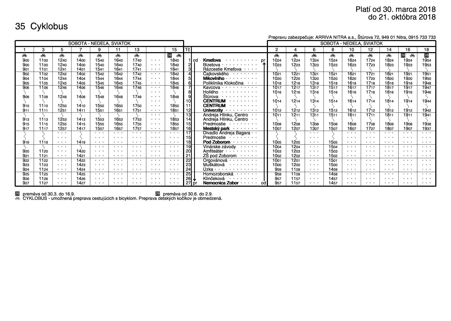 Cyklobus s označením C35 premáva v roku 2018 od piatku 30.3.2018 do nedele 21.10.2018.
