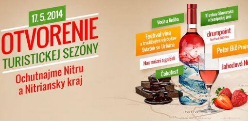 Letná turistická sezóna sa blíži aj do Nitry. Jej veľkolepé otvorenie sa bude konať 17. mája 2014 od 9:00 hod. priamo v centre mesta. Pešiu zónu a Svätoplukovo námestie zaplavia jahodové a čokoládové špeciality, najlepšie ročníkové vína, regionálne a remeselnícke výrobky a otvorenie V. ročníka súťaže o najobľúbenejšiu turistickú atrakciu v regióne. Nakoľko mottom tohtoročného podujatia je voda a liečba, nebude chýbať prezentácia termálnych kúpalísk a wellness, ani stan zdravia s masážami, cvičeniami či zdravotným poradenstvom. Námestie prevonia aj množstvo regionálnych gastronomických špecialít od pukanských párancov, cez paprikáše, perkelty až po podpecníky a štrúdle. Atmosféru budú dotvárať aj oslavy 10. výročia vstupu Slovenska do Európskej únie, v rámci ktorých vystúpi známy nitriansky spevák Itcho Pčelár so skupinou Jamestown. Počas dňa budú prebiehať bezplatné prehliadky Nitry v dobových kostýmoch ako aj bezplatná jazda turistickým vláčikom „Nitrianskym expresom“.
