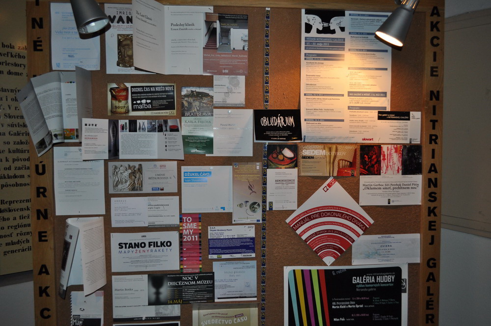 Ponitrianske múzeum sídli na Svätoplukovom námestí. Výstava sa nachádza na poschodí. Vystavené diela nehodnotíme nakoľko každý chápe umenie ináč. Páčila sa nám ale stála expozícia archeologických vykopávok. Na chvíľu sme sa ocitli v dobách minulých. Celkový dojem nám pokazil personál múzea. Nepríjemným hlasom nám pani oznámila, že v múzeu sa nesmie fotiť. Tá istá osoba sa nahlas pred návštevníkmi spýtala kolegyne či už nezačne zamykať jednotlivé miestnosti. Hodinky ukazovali 23:46. Na blízku stojaca skupinka mladých ľudí zhodnotila personál výrazom "akí čudní ľudia". Takéto správanie je neakceptovateľné z pohľadu návštevníka. Našťastie sme na takéto správanie zvyknutí. Len či aj ľudia z iných krajín...