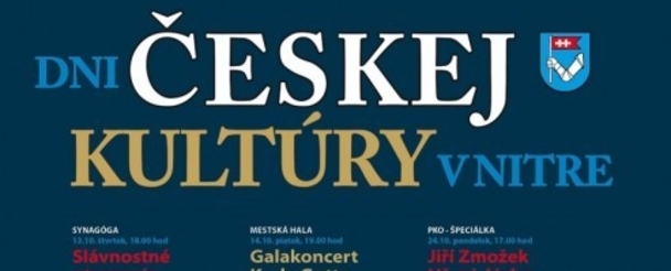 Dni českej kultúry otvoria koncertom Taras Piano Tria v nitrianskej Synagóge 13. októbra. V piatok 14. októbra zaspieva Nitranom v Mestskej hale na sídlisku Klokočina stálica českej hudobnej scény Karel Gott. Niekoľkonásobného českého Zlatého slávika na koncerte sprevádza Boom! Band Jiřího Dvořáka, hudobným hosťom bude slovenská skupina Fragile. Pre priaznivcov iného hudobného štýlu ponúka podnik Valašský šenk v ten istý večer krst nového albumu známej českej kapely Vypsaná fixa. Ako ďalej informovala Ľudmila Synaková z nitrianskeho magistrátu, súčasťou Dní českej kultúry bude aj premietnutie klasického nemého filmu Erotikum a historického filmu Lidice vo Filmovom klube Univerzity Konštantína Filozofa.