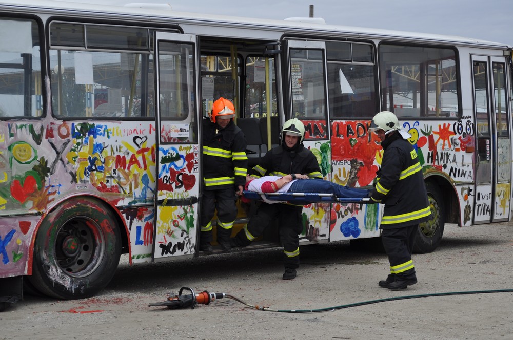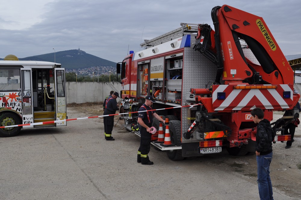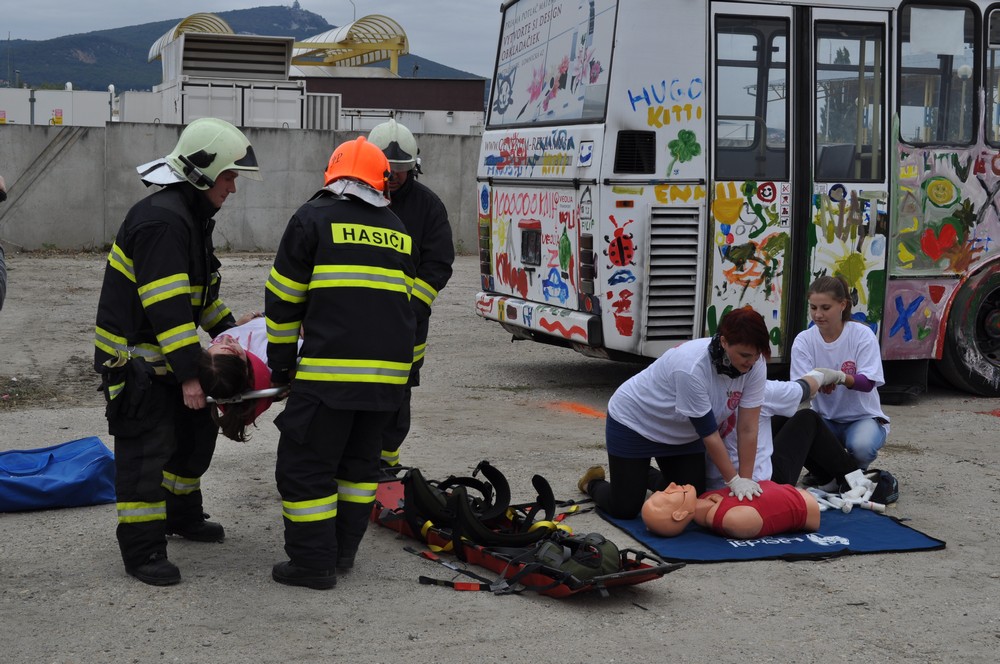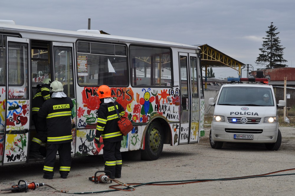 Nechýbala ani polícia s motorkou a vanom, ktorý chodí k dopravným nehodám. Hasiči predviedli zásah v autobuse, asistovali im žiačky zo Strednej zdravotníckej školy v Nitre.