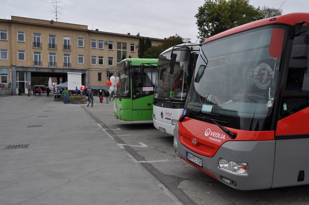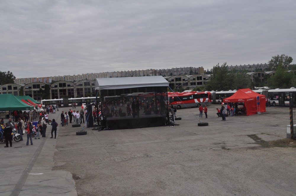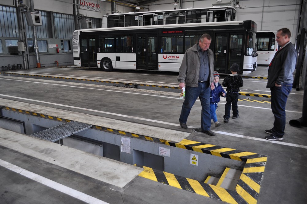 Spoločnosť Veolia Transport Nitra, ktorá zabezpečuje MHD v Nitre pootvorila dnes svoje dvere pre verejnosť. Areál na Štúrovej ulici sa zaplnil hlavne rodičmi s deťmi a nadšencami autobusovej prepravy. Okrem prehliadky autobusov, ktoré premávajú v uliciach Nitry bolo možné si prezrieť aj starý Ikarus, Double-decker či Ešelku. Všetky menované autobusy vozili návštevníkov po pripravených okružných jazdách. Zaujali nás garáže, kde sa opravujú autobusy, umyváreň, čerpacia stanica, ukážky tarifného a informačného systému.