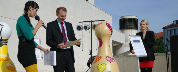 Nitrianska komunitná nadácia odovzdala figúrky grantového programu Aby ľudia ľuďom pomáhali už po šiestykrát. Na Svätoplukovom námestí v Nitre sa 21. septembra stretli zástupcovia firiem, podporených aktivít, ale i škôl, ktoré vytvárali umelecké objekty – figúrky.