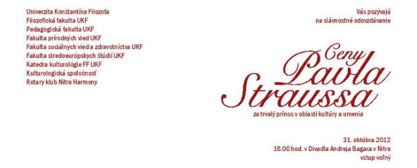 Ceny Pavla Straussa odovzdajú 31. októbra 2012