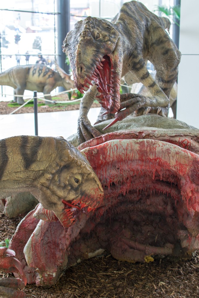 Jednotlivé exponáty vytvárajú zaujímavé scény s rôznymi príbehmi ako dinosaury lovia menšie druhy, matka ktorá ochraňuje svoje vajíčka alebo bádatelia, ktorí práve ulovili a odnášajú vzácny kus. Výstava je sprevádzaná informáciami o všetkých vystavených dinosauroch.