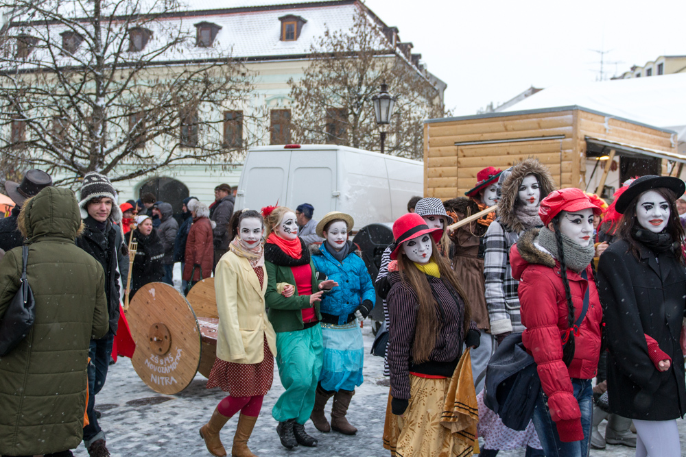 Ani nepriaznivé počasie neprekazilo dnešný fašiangový sprievod Nitrou, ktorý si prišli pozrieť desiatky zvedavcov. Sprievod už tradične začínal na začiatku pešej zóny a viedol až na Svätoplukovo námestie. O dobrú zábavu sa postaralo viacero účinkujúcich ako Harry teater, Koranti, Mažoretky I.NiMa z CVČ Domino a viaceré folklórne súbory.