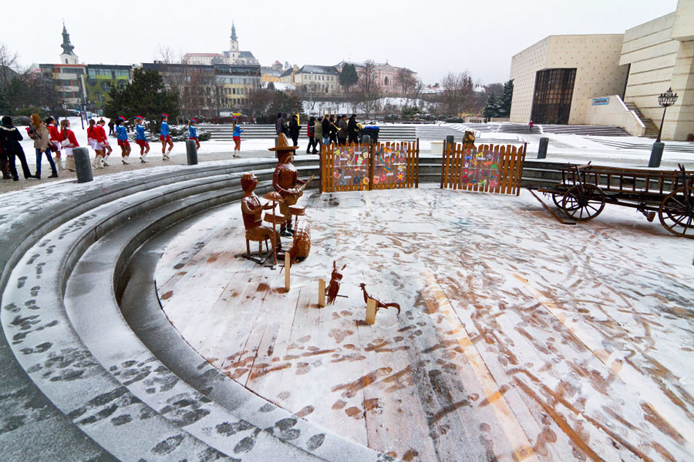 Fašiangy v Nitre však začali už ráno o 10 hodine, kedy sa otvorilo pre návštevníkov množstvo stánkov. Nechýbala tradičná zabíjačka spolu s rôznymi dobrotami.