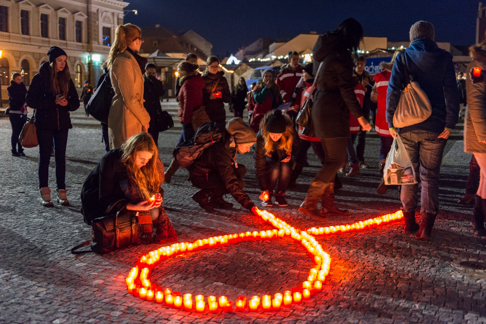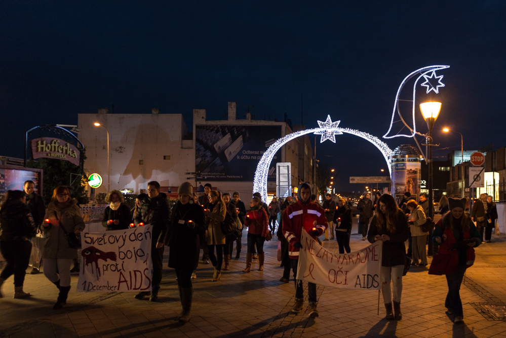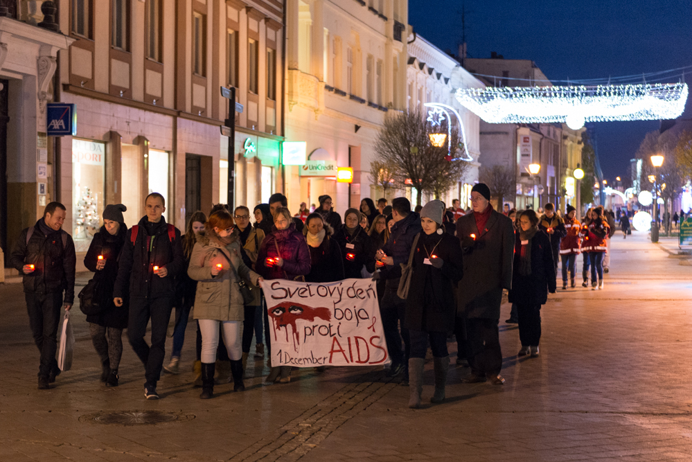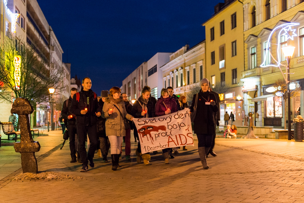 Vyjadriť podporu ľuďom chorým na AIDS prišlo dnes na pešiu zónu niekoľko desiatok mladých ľudí. Sviečkový pochod viedol od začiatku pešej zóny až pred Divadlo Andreja Bagara. Každému zúčastnenému organizátori pred začiatkom dali sviečku a červenú stužku, ktorá symbolizuje svetový deň boja proti AIDS (1.december).