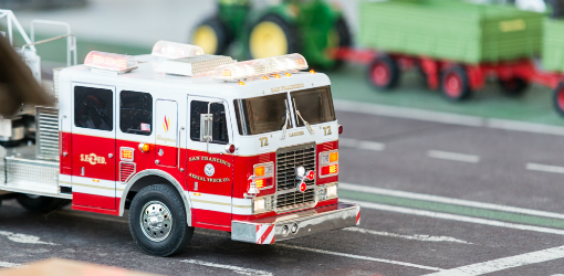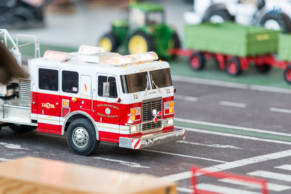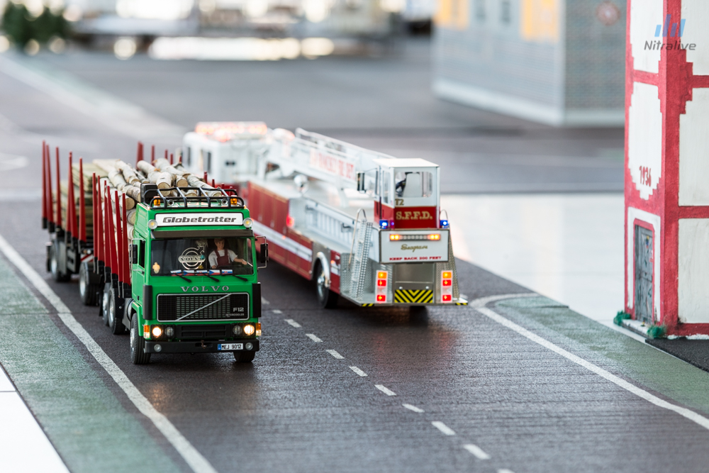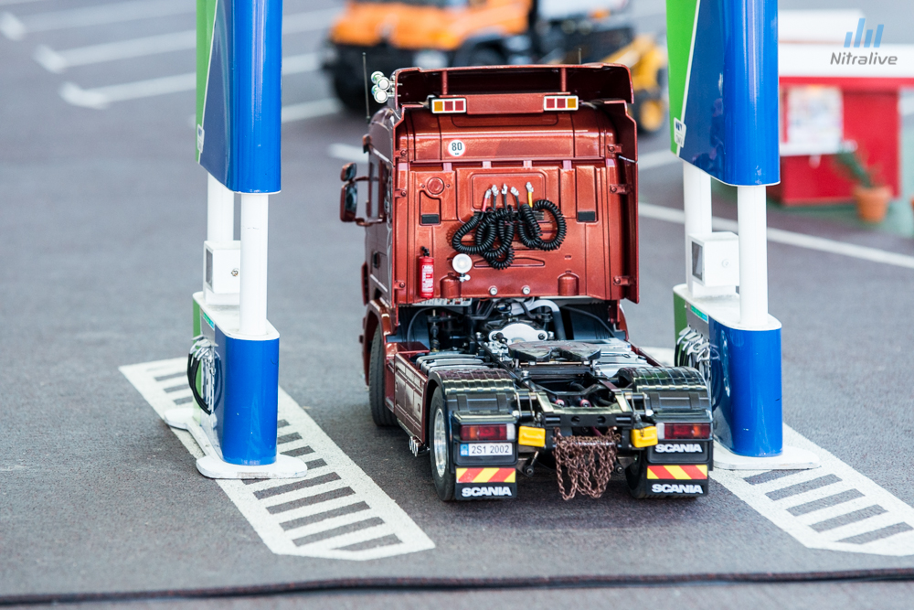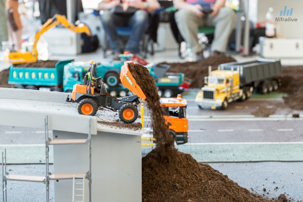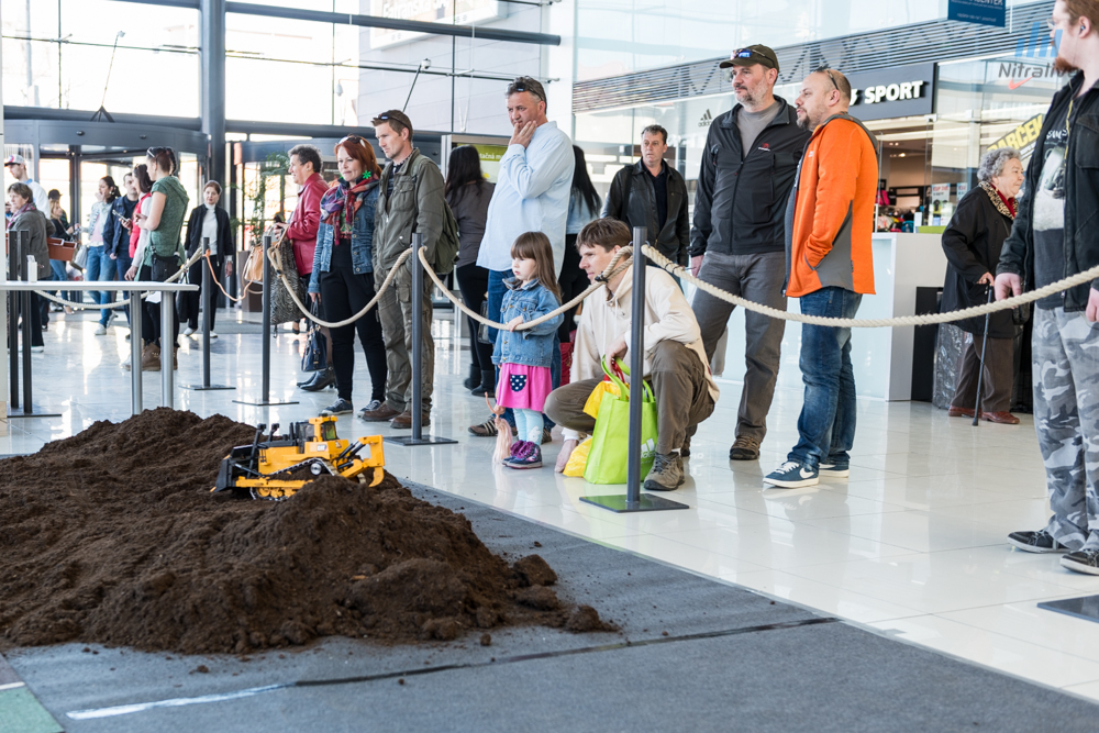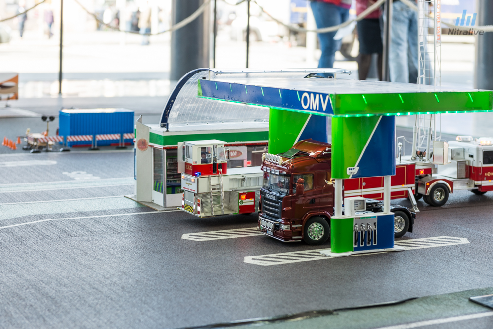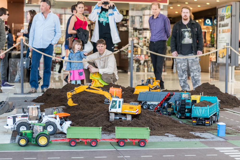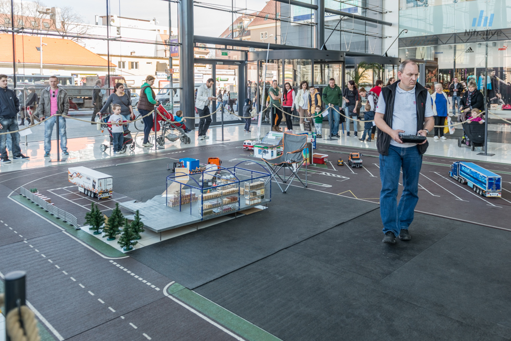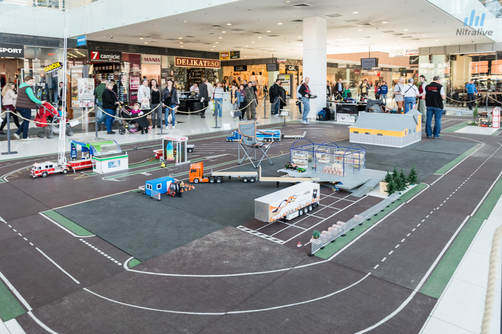 Nielen deti určite zaujmú diaľkovo ovládané modely ťahačov s naloženým nákladom uháňajúce po cestách, súprava so sklápacím návesom, umývacia linka pre nákladné vozidlá, súprava na prevoz osobných automobilov či čerpacia stanica. Všetci čo navštívia Galériu MLYNY majú možnosť vidieť nakladanie a vykladanie materiálov na stavbe alebo hasičskú stanicu s reálnym výjazdom hasičskej techniky počas zásahu. Všetko prostredníctvom RC modelov v živej akcii, ktorá v každom mužovi opäť prebudí chlapca.