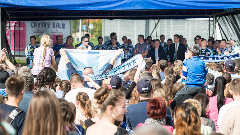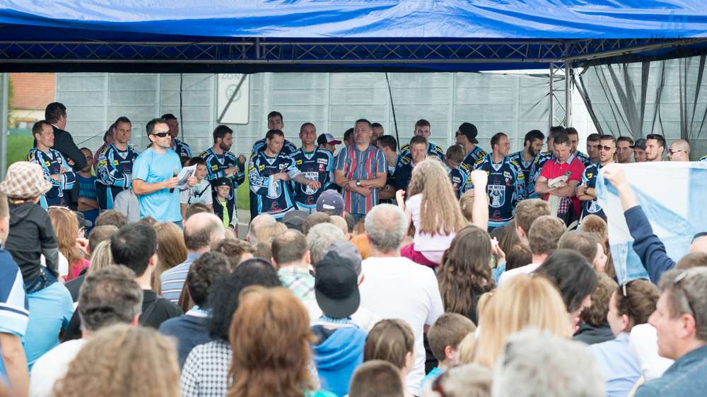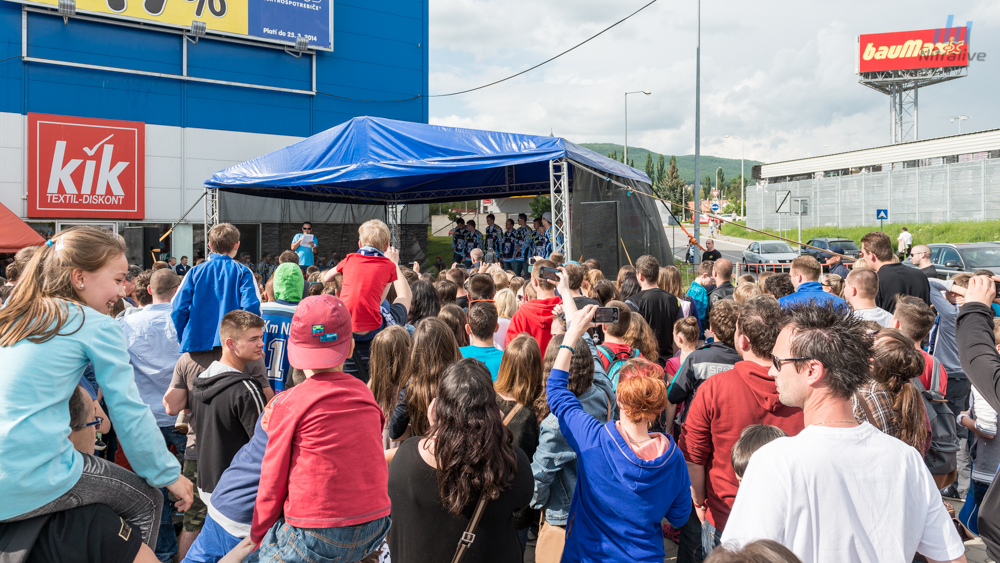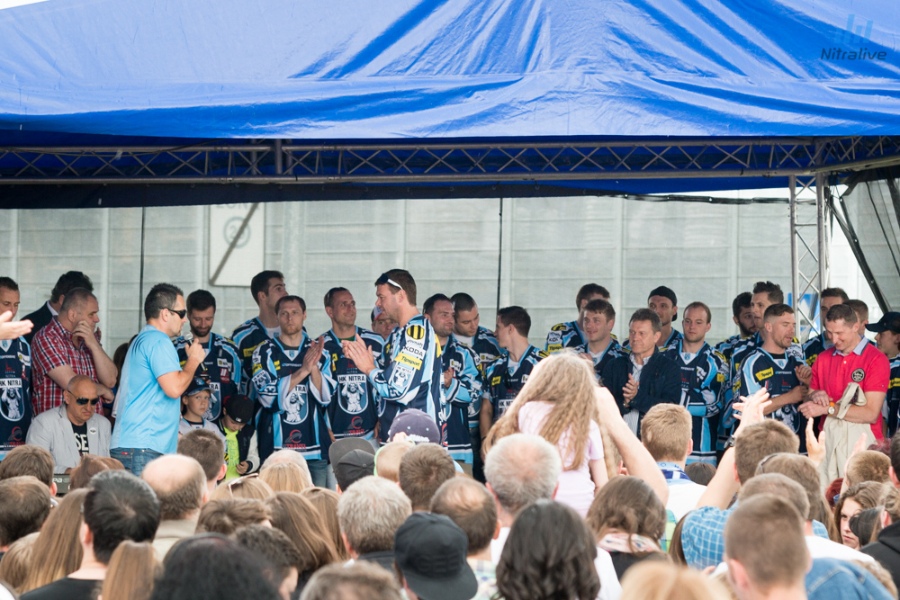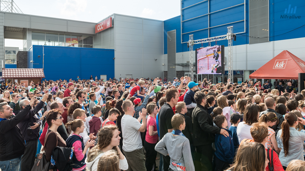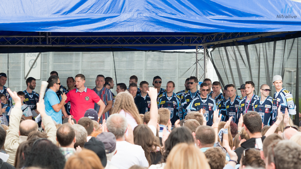 V pondelok sa zišli stovky fanušikov, aby sa poďakovali svojim strieborným medailistom. Už pol hodinu pred začiatkom sa parkovisko pred ZOC Max začalo zapĺňať prvými nedočkavcami. Všetko to začalo krátko po 16:00, keď za obrovského potlesku začali hráči výchádzať na pódium. Chýbali len dvaja, Roman Tománek, ktorý bol na magnetickej rezonancii v Bratislave a Robert Kristan, ktorý je už doma v Slovinsku. Moderátor rozdal aj niekoľko darčekov. Do publika letela dokonca strieborná medaila trénera Antonína Stavjaňu.
