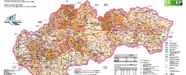 Mapa nehodových úsekov v SRMapa nehodových úsekov v SR, cesty I. a II. triedy
