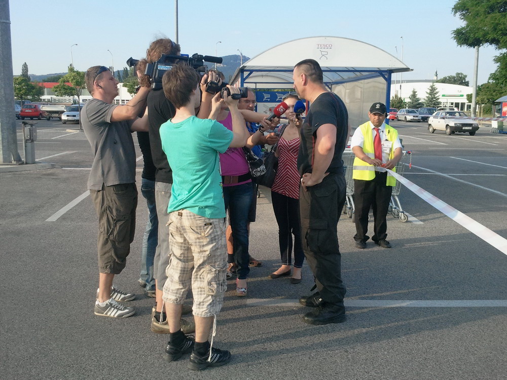 Dnes okolo pol 5tej uzavrela polícia parkovisko pred hypermarketom Tesco v Nitre. Dôvodom bol podozrivý kufrík, ktorý našla miestna bezpečnostná služba. Na miesto bol povolaný policajný pyrotechnik, prítomná bola aj sanitka, dopravu riadila mestská polícia, ktorá nepúšťala autá z Bratislavskej na parkovisko. Uzatvorená bola aj cesta vedúca popri Tescu. Podľa slov pyrotechnika miesto zaistili, celé parkovisko vypratali a obohnali páskou. Pyrotechnik kufrík odpálil na diaľku, výbušné látky v ňom nenašli. Neskôr vyšlo najavo, že kufrík si na parkovisku zabudol neznámy človek.