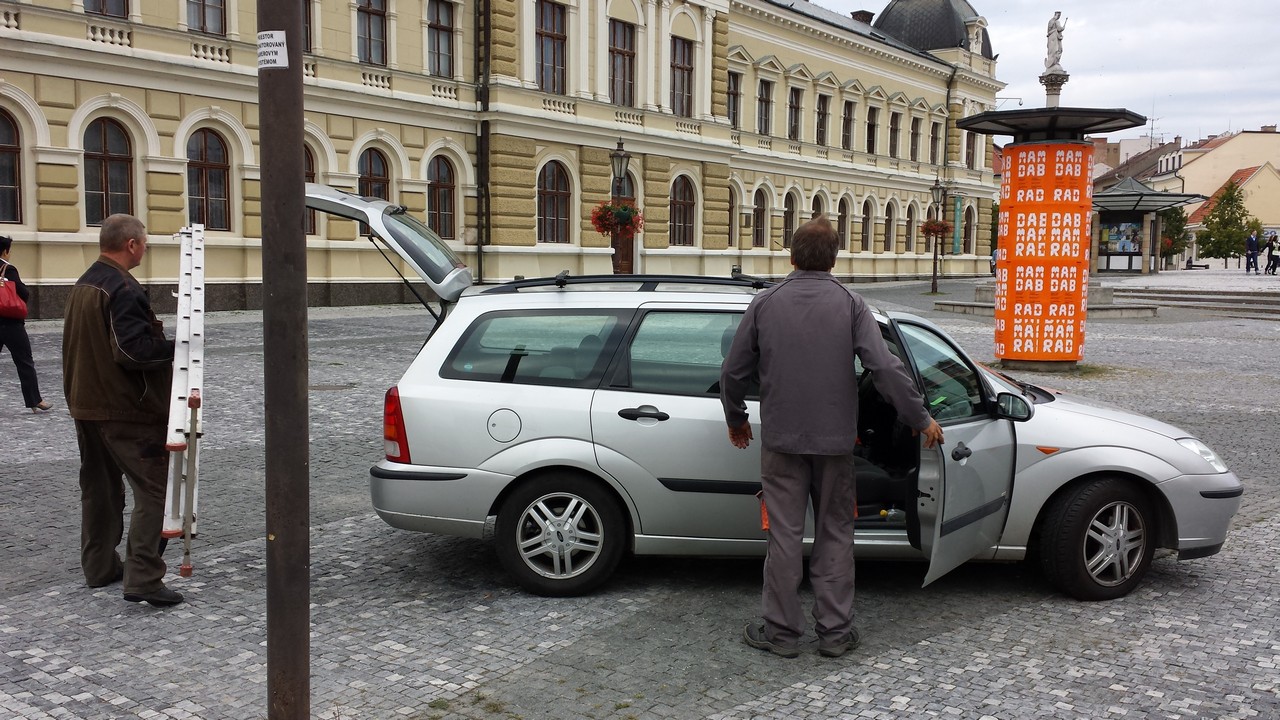 Na Svätoplukovom námestí sme zastihli pánov, ktorí staré tabule demontovali