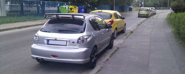 Každý, kto chodí na hokej, alebo občas autom do parku vie, ako parkujúce autá na ulici Parkové nábrežie blokujú jeden jazdný pruh. Dlhé roky sa s tým nič nerobilo až doteraz. V júli tu bola osadená dopravná značka D11g - Parkovisko (čiastočné státie na chodníku pozdĺžne). Parkovať sa teda smie časťou auta na chodníku a časťou na ceste. V čase vyhotovenia fotiek stáli všetky autá nesprávne - ľudia si ešte asi nevšimli novú značku. Vodorovné značenie (čiary na ceste) budú vyznačené v najbližšom čase v závislosti od počasia.