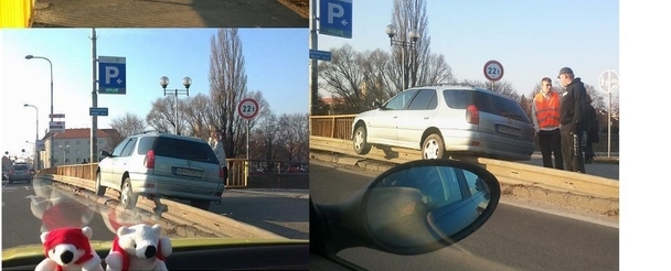 V Nitre sa už pomaly nedá kde zaparkovať, preto vznikajú častokrát takéto vtipné situácie. Pán to zaparkoval priamo na moste, aby mal bližšie do centra... samozrejme ide o dopravnú nehodu, ktorá sa stala dňa 26.1.2012.