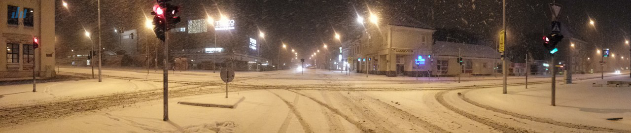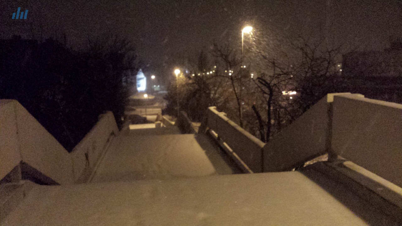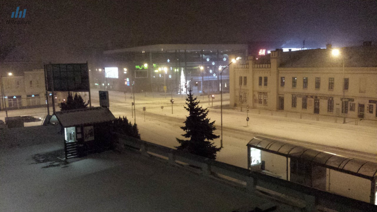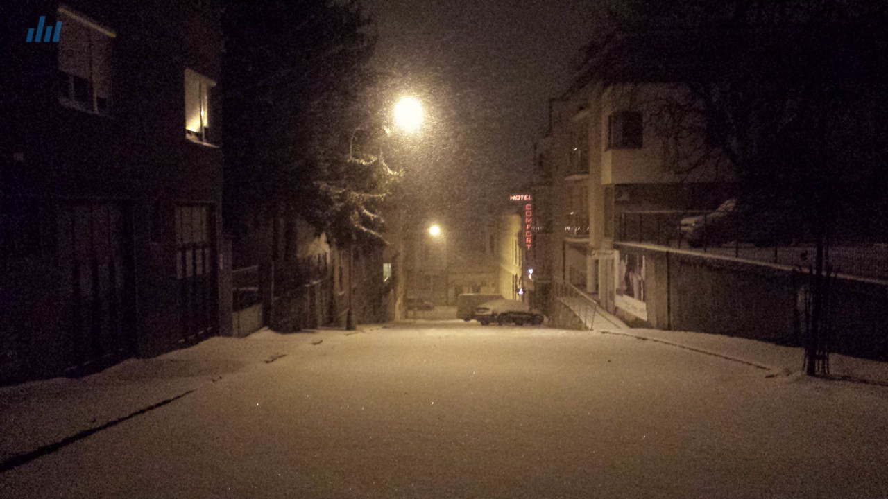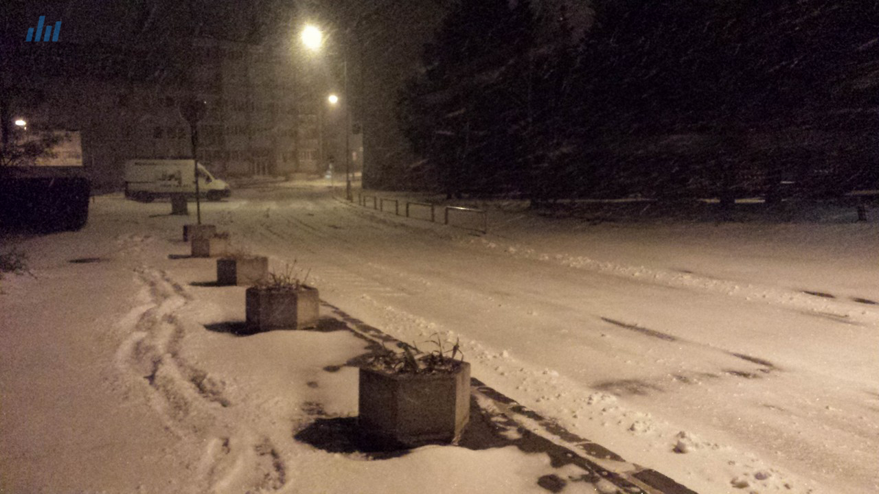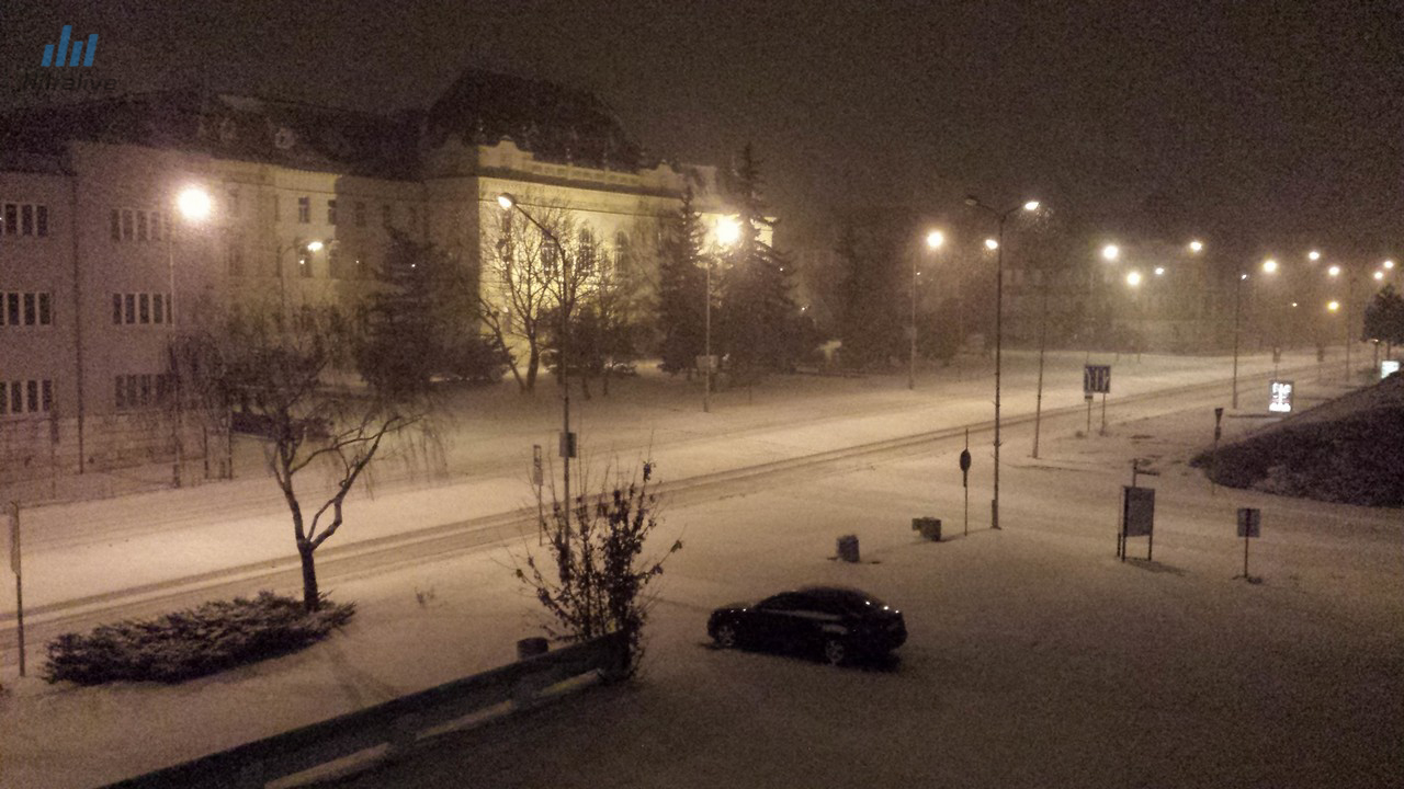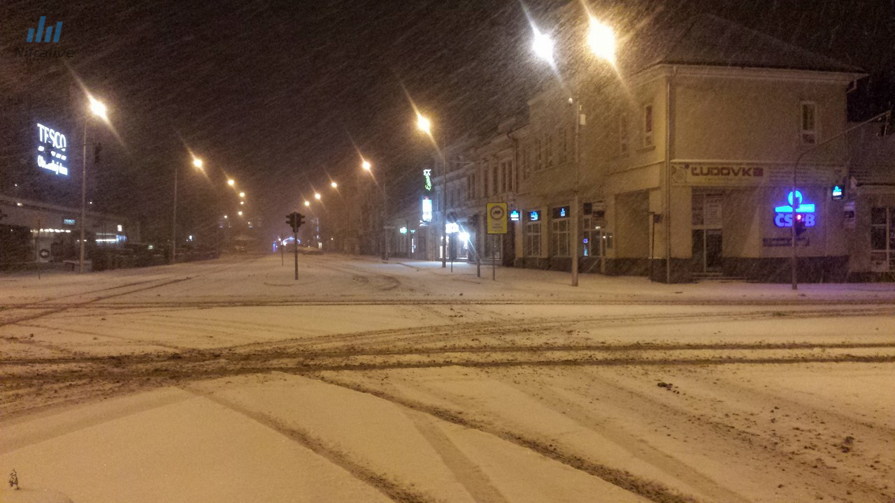 Nočné sneženie - Štefánikova ulica, Nitra, 28. december 2014