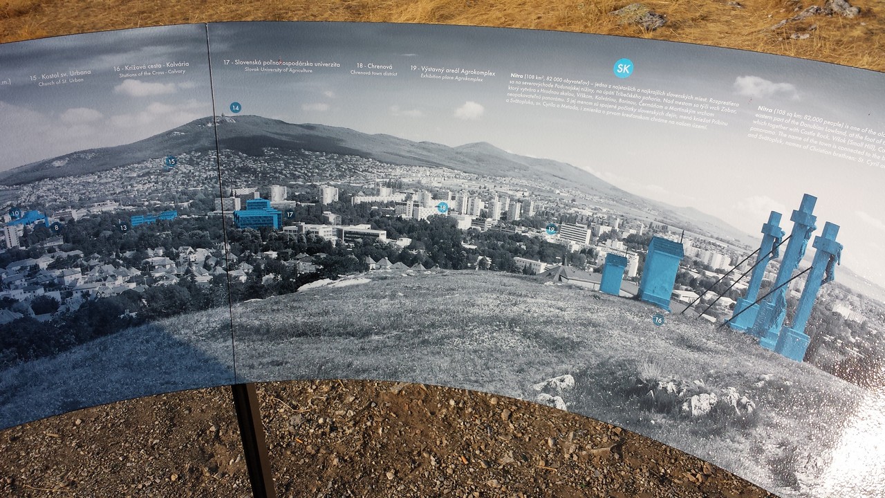 „Vrchol Kalvárie poskytuje krásny výhľad na celú Nitru. Cieľom realizácie tejto atrakcie bolo zatraktívnenie tohto vyhliadkového miesta, keďže ho navštevuje mnoho turistov i domácich návštevníkov. Mesto na túto turistickú atrakciu vyčlenilo zo svojho rozpočtu spolu s mobiliárom 7500 eur. Rozhľadňa s ďalekohľadom sa nachádza na mieste, kde sa kedysi vchádzalo do šachty vedúcej do guľometného hniezda. Na plech, ktorý obkolesuje spredu rozhľadňu, už bola osadená panoramatická mapa s vyobrazením najdôležitejších budov v meste. Trikrát do týždňa je zabezpečené i vyprázdňovanie smetných nádob z tohto miesta. (s)
