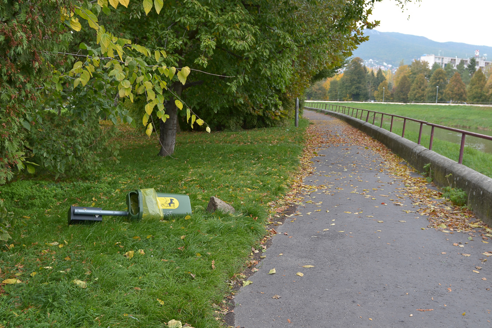 Vietor, ktorý strom zlomil, musel byť naozaj "silný". Len niekoľko metrov odtiaľ dokázal vyvrátiť aj smetnú nádobu pre psíčkarov. Alebo to spôsobil niekto iný?