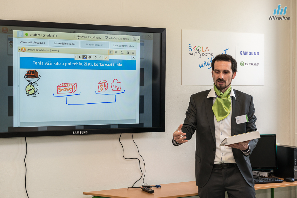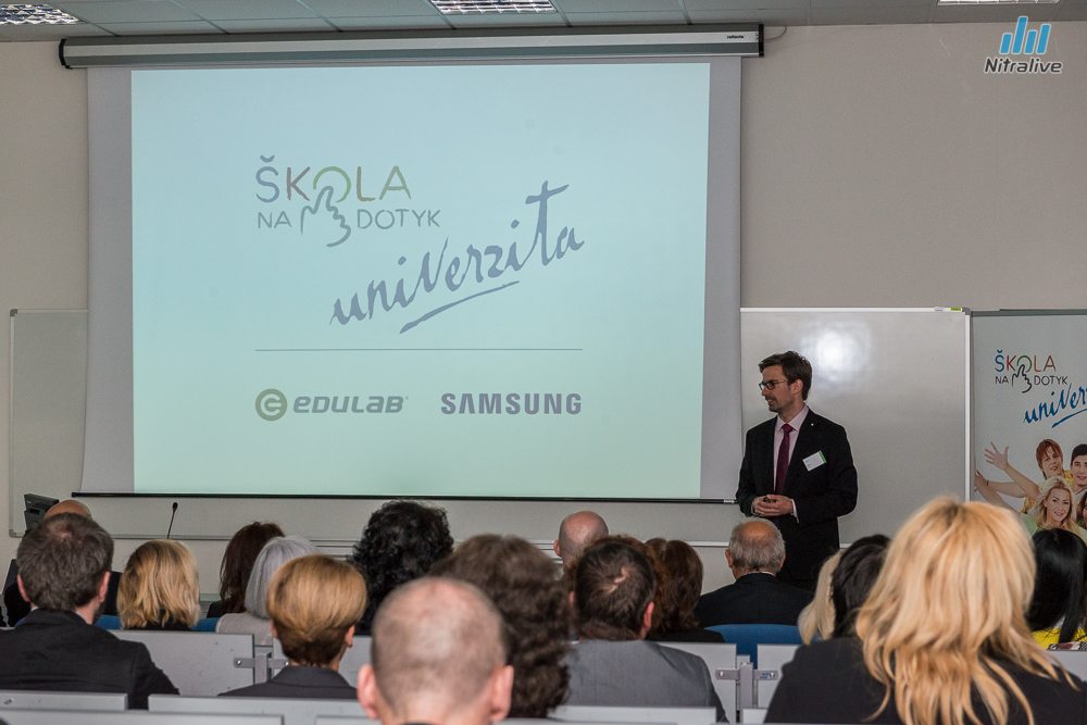 Zvyšovať digitálne zručnosti budúcich pedagógov už počas ich štúdia na vysokej škole tak, aby prichádzali do praxe schopní využívať pri výučbe nové technológie, je cieľom projektu ŠKOLA NA DOTYK UNIVERZITA. S podporou spoločnosti Samsung Electronics Czech and Slovak projekt v spolupráci s troma slovenskými univerzitami - Komenského v Bratislave, Pavla Jozefa Šafárika v Košiciach a Konštantína Filozofa v Nitre, realizuje nezisková organizácia EDULAB. „Čoraz väčšie prenikanie technológií do školstva kladie stále vyššie požiadavky aj na digitálne kompetencie učiteľov. Preto budú musieť byť schopní naučiť sa zvládať výučbu pomocou nových technológií už pred príchodom do praxe,“ vysvetľuje dôvody realizácie projektu Ján Machaj, riaditeľ EDULAB-u.