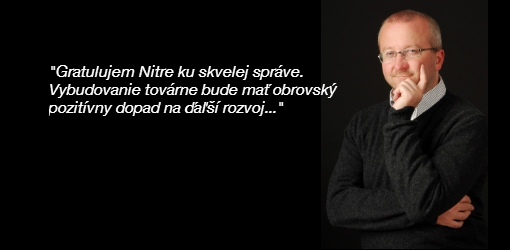 "Gratulujem Nitre ku skvelej správe. Vybudovanie továrne Jaguáru bude mať obrovský pozitívny dopad na ďalší rozvoj zamestnanosti, infraštruktúry, vzdelanosti a samotnej Nitry ako technologického centra. Automobilový priemysel na seba viaže ďalšie sofistikované technológie a nová automobilka sa stane motorom ďalšieho rozvoja Nitry a celého kraja. To je pre RegioJet ako významného dopravcu v Nitre veľmi dobrá správa. Osobne mám naviac k Jaguáru veľmi pozitívny vzťah – mal som to auto. Je to nádherná značka, ktorá je spoľahlivá. Bola to moja srdcovka."