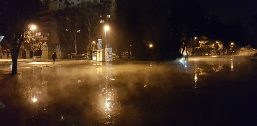 Vo štvrtok večer prasklo na sídlisku Chrenová I na ulici Trieda Andreja Hlinku vodovodné potrubie. Voda zaliala cestu, ktorá vedie súbežne s hlavnou cestou popri parkovisku pri OD Progres a obytným domom.