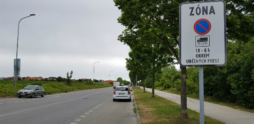 Od začiatku mesiaca je na sídlisku Klokočina v Nitre zavedená regulácia státia vozidiel nad päť metrov. Hranice zóny s regulovaným státím vozidiel sú vyznačené dopravnými značkami IP 24 „Zóna s dopravným obmedzením“ resp. IP 24b „Koniec zóny s dopravným obmedzením“. Do predmetnej značky bola integrovaná značka B 33 „Zákaz státia“ s dodatkovou tabuľkou E 10 „Druh vozidla“, na ktorej bol použitý symbol dopravnej značky B 20 “ Zákaz vjazdu vozidiel alebo súprav vozidiel, ktorých dĺžka presahuje vyznačenú hranicu“. Táto dodatková tabuľka obmedzuje platnosť zákazu státia pre vozidlá alebo súpravy, ktorých dĺžka vrátane nákladu presahuje vyznačenú hranicu t.j. 5,0 m. Okrem toho je na dopravnej značke vyznačujúcej začiatok a koniec zóny použitá dodatková tabuľka E 12 s textom „18-8 h “, ktorá určuje časovú platnosť zákazu státia a v spodnej časti dopravnej značky je použitý text „Okrem určených miest“. Predmetný text určuje, že zákaz státia neplatí na určených miestach. O jednoznačnosti textu možno polemizovať, ale pravdepodobne ide o parkovacie plochy vyznačené dopravnými značkami IP 12 „Parkovisko“ s dodatkovými tabuľkami, ktoré umožňujú parkovať vozidlám na 5,0 m a osobným vozidlám.
