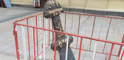 Bronzový meč na pešej zóne v Nitre je znovu poškodený. V minulosti ho niekoľko krát poškodili vozidlá, v roku 2015 to bol turistický vláčik, v roku 2017 malé vozidlo. Okolo meča sú kovové zábrany.