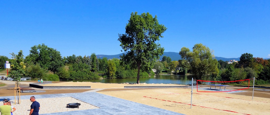 Na brehu vznikla pláž s jemným pieskom, ktorý pochádza zo slovenského Záhoria. Kúpanie v jazere nie je možné, pláž bude zatiaľ slúžiť na slnenie a športy. Sú pripravené ihriská pre plážový futbal, volejbal a petang. Nechýba stolný tenis, detské ihrisko a asfaltová dráha na bicyklovanie, korčuľovanie či kolobežkovanie.
