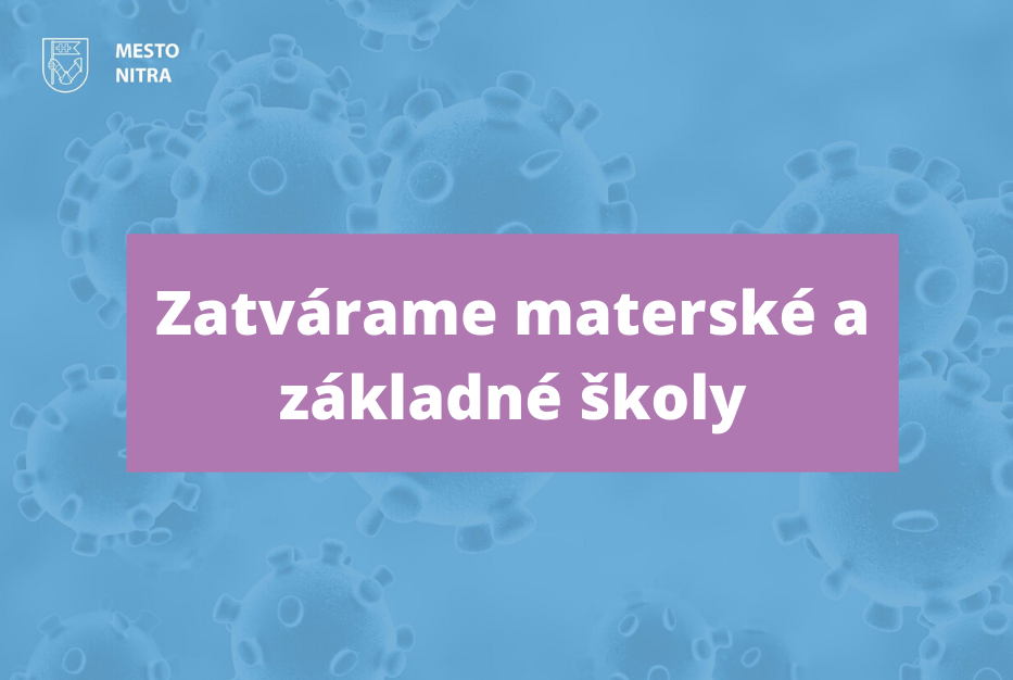 Na základe rozhodnutia krízového štábu a po konzultácii s Regionálnym úradom verejného zdravotníctva pristúpilo mesto Nitra k uzatvoreniu všetkých materských a základných škôl v zriaďovateľskej pôsobnosti mesta Nitra a to od zajtra, štvrtka 12. marca 2020 do pondelka 16. marca 2020 vrátane (s možnosťou predĺženia podľa pokynov hl. hygienika).