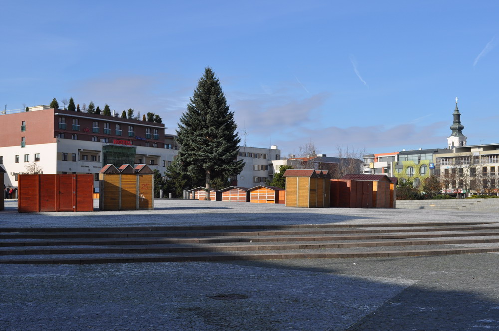 V pondelok zároveň začali na námestí stavať Vianočné mestečko. Tvoriť ho bude 31 stánkov, kde budú predávať vianočný sortiment a občerstvenie. Otvoria ich 4. decembra. Vlani zakúpená nová vianočná výzdoba bude mesto zdobiť aj tento rok. „Svietiaca obloha bude na tom istom mieste ako počas minulých Vianoc,“ povedal Jančovič. Výzdoba v bielej farbe založená na svetelných efektoch stála 32 230 eur. Súčasťou vianočného Svätoplukovho námestia každoročne býva tradičný drevený betlehem z dielne ľudového umelca Štefana Réckyho a vyrezávaný 3,5 metrový drevený Mikuláš. Osadenie klziska mesto tento rok neplánuje. Mikuláš do Nitry zavíta 5. decembra. Program na Svätoplukovom námestí sa začne o 17:30.