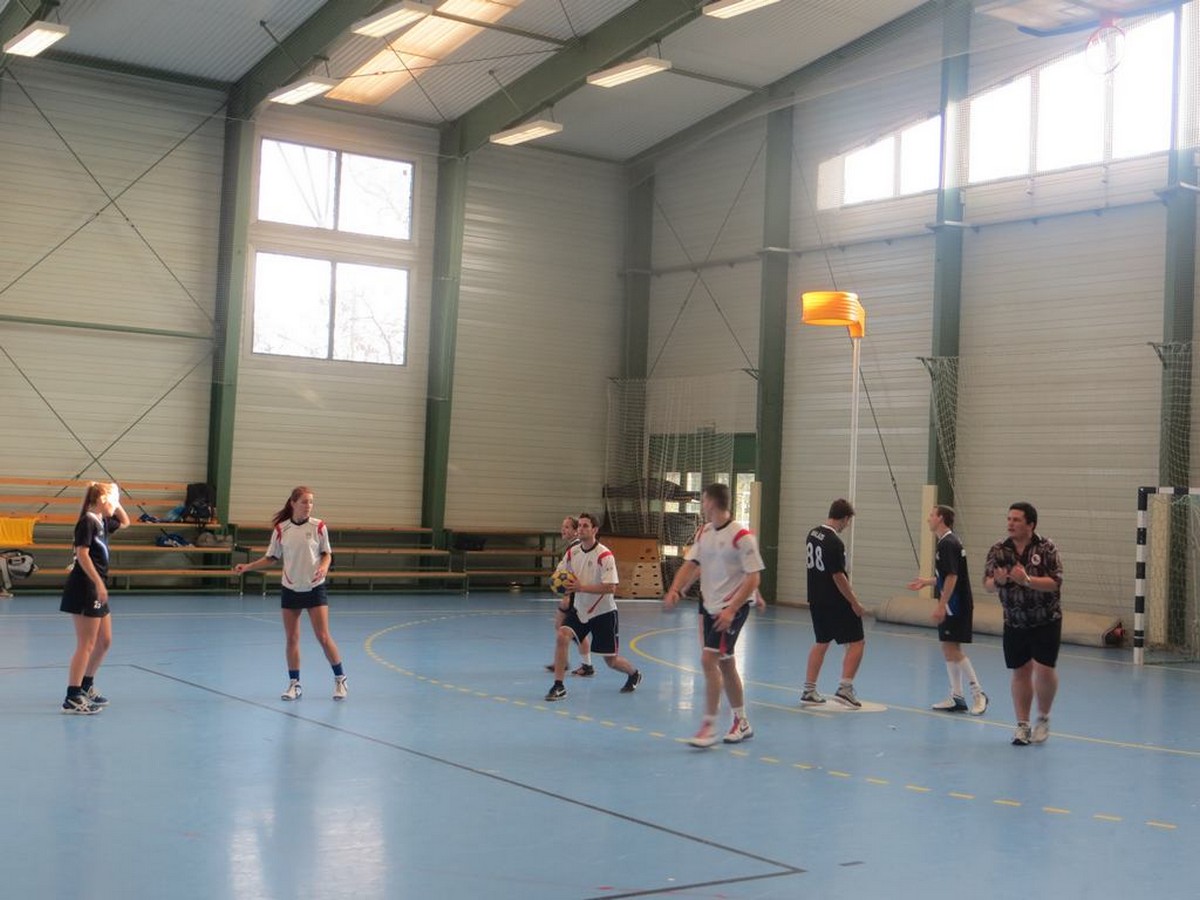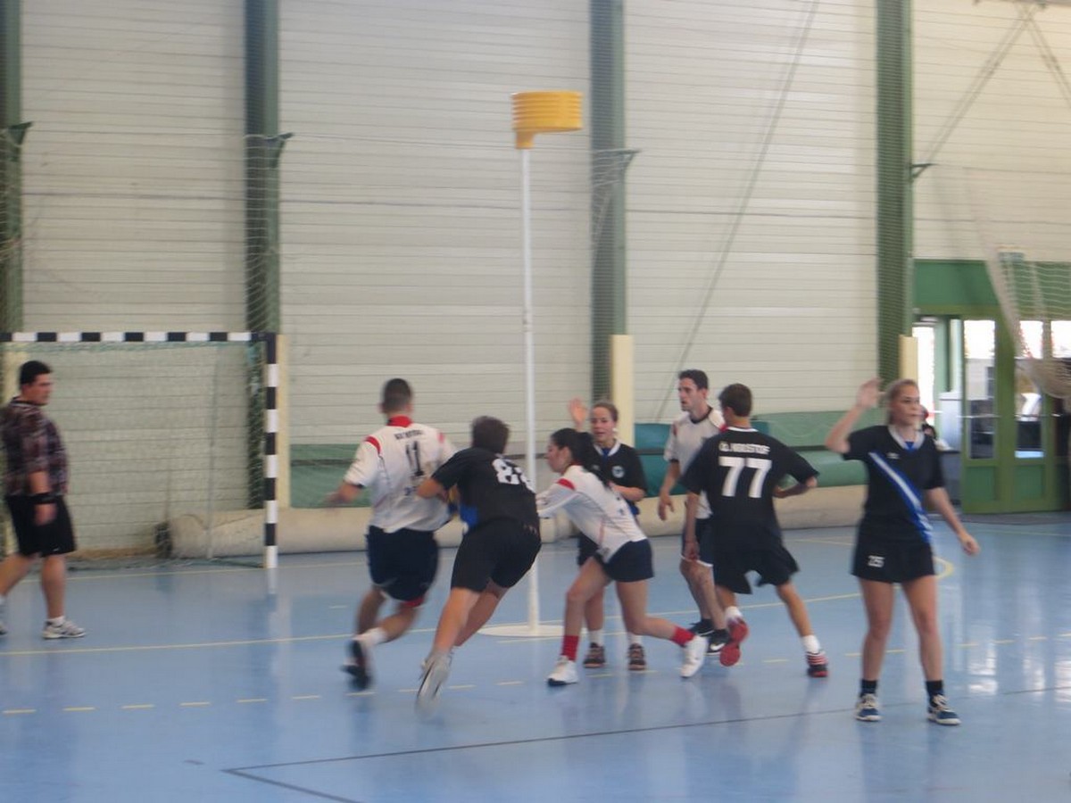 V prvom zápase bol súperom Nitry tím vysokej školy športu TFSE, posilnený o niekoľkých reprezentantov z prvej ligy. Celý súboj bol v znamení kvalitnej obrany a nepresnej streľby. Počas prvých dvadsiatich minút padol iba jediný kôš z rúk maďarského tímu a po veľkom množstve zahodených nitrianskych šancí sa podarilo strelecky presadiť Nine Kusyovej. Obranná hra pokračovala aj naďalej a polčas skončil tesnou prehrou Nitry 1:2. Slováci nezachytili nástup do druhého polčasu a súper im odskočil na rozdiel 3 bodov. Ešte jedenkrát sa Nitrania priblížili súperovi na dostrel dvoch bodov, ale v tom momente maďarskí vysokoškoláci zabodovali a vytvorili si rozhodujúci náskok. V zápase sa trikrát presadil hrajúci tréner Nitry, ale bohužiaľ to bolo už za rozhodnutého stavu.