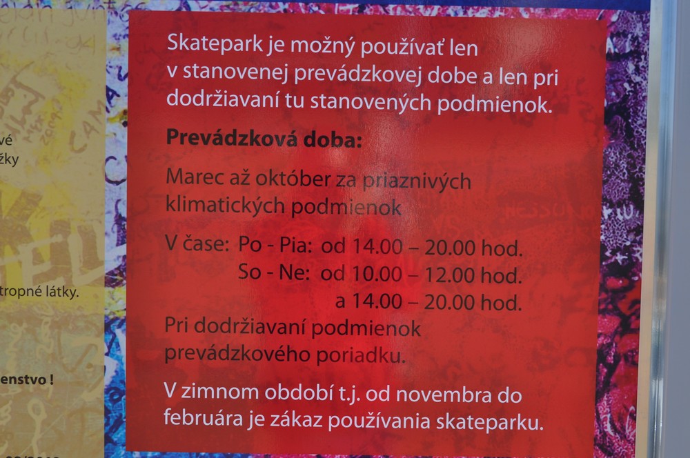 V zimnom období od novembra do februára je zákaz používania skateparku.