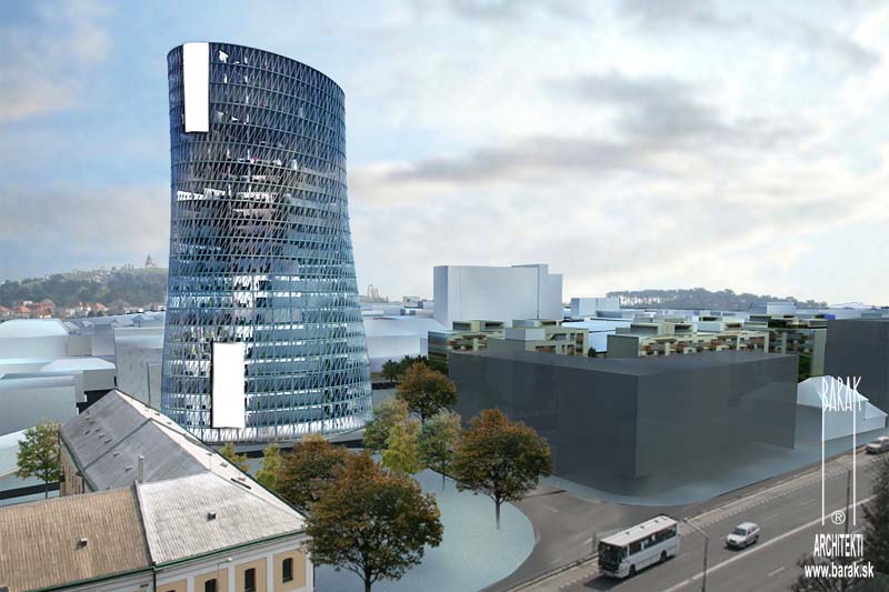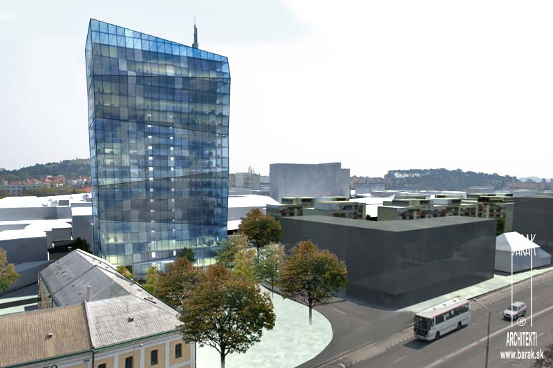 Štúdia výškovej budovy v pripravovanom projekte Nová Nitra v areáli bývalého pivovaru Corgoň